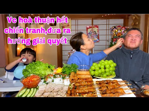 Vc hoà thuận hết chiến tranh ăn bữa cơm đầm ấm-ba chỉ luộc mắm tôm chua,bánh hỏi chả giò nem nướng ...